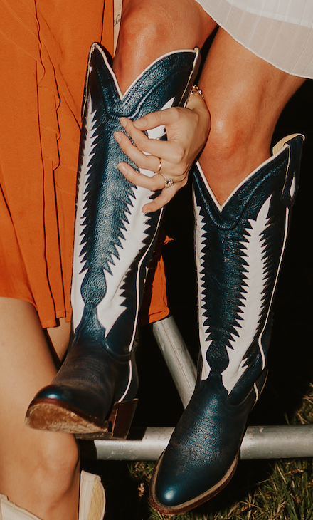Anonymous I love these boots!! The navy shimmers just a little bit so they are equal parts country and fabulous! Very comfy and fit like a glove. Love the tall boot!!